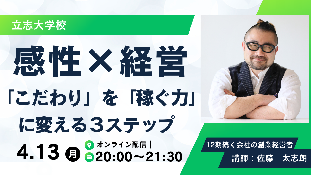 講演タイトル:感性×経営 ~「こだわり」を「稼ぐ力」に変える3ステップ~
