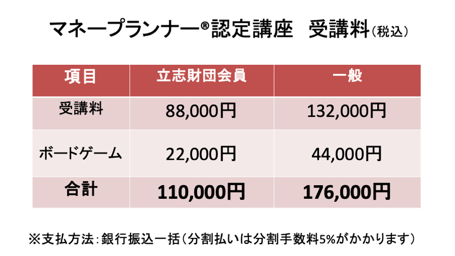 受講料は認定講座の受講料です。立志財団会員の方は割引になります。