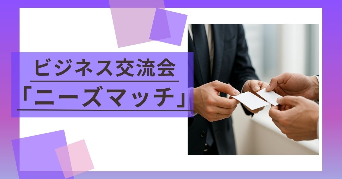 ニーズマッチは、ビジネスでの繋がりを得るための2時間制の交流会です。ただ、ビジネスの繋がりと言っても、交流会で出会った相手に対して営業をするのではなく